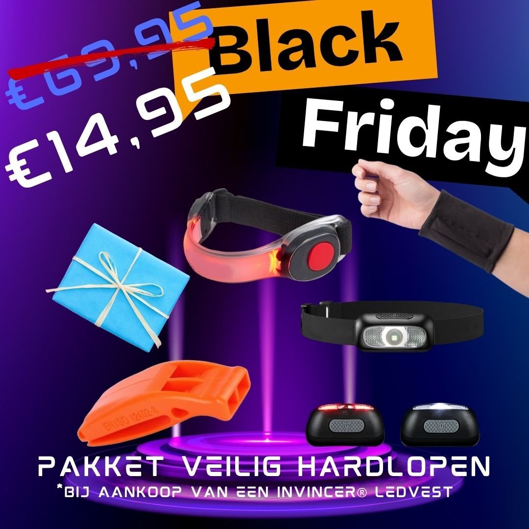 ReflectiveSport biedt een unieke kans: koop een ledvest vanaf €30 en je kunt ons Black Friday pakket voor slechts €14,95 (normaal €69,95) erbij bestellen.